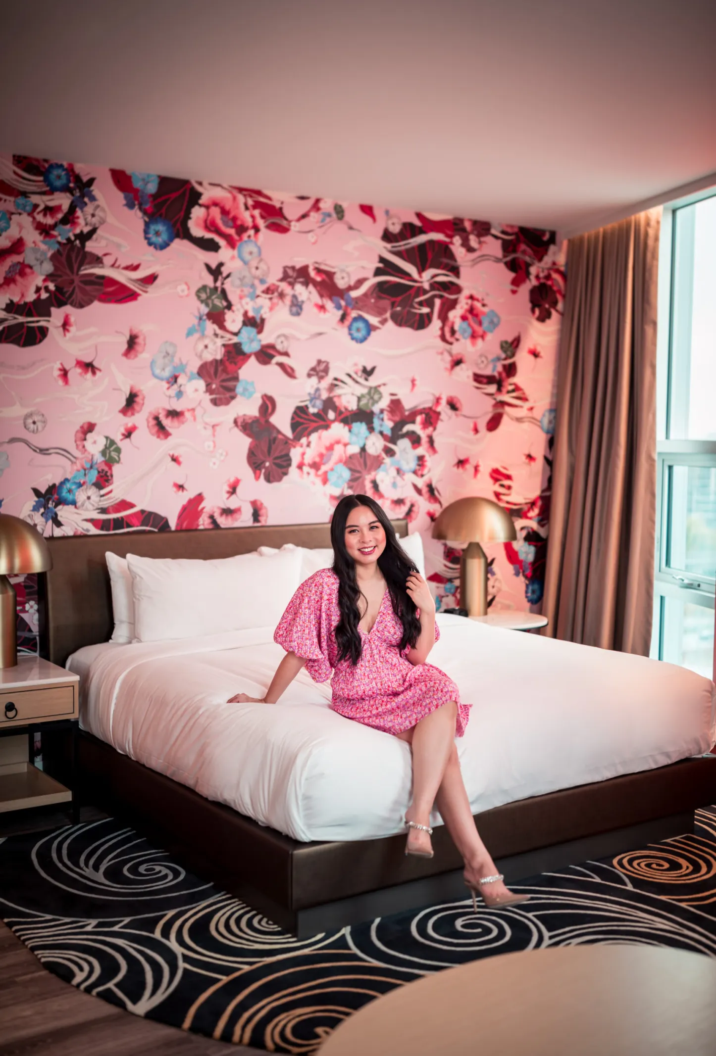 When making your booking, you’ll have five bold guestroom designs with distinct textures, patterns, and colours to choose from, so you can select the room type that best suits your mood (or your outfit choice). Each room features a patterned wallcovering with koi fish — a symbol of strength and perseverance in Chinese culture. The view-facing soaker tubs featured in most guestrooms have also become a popular prop by humans and dogs alike.
